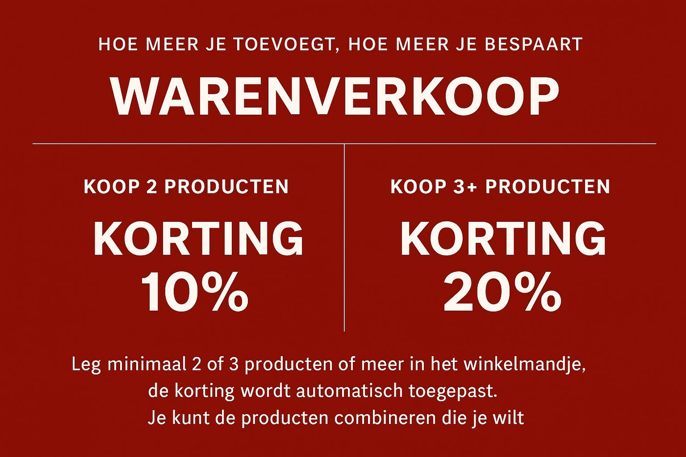 Verzendkosten, belastingen en kortingscodes worden berekend bij het afrekenen.